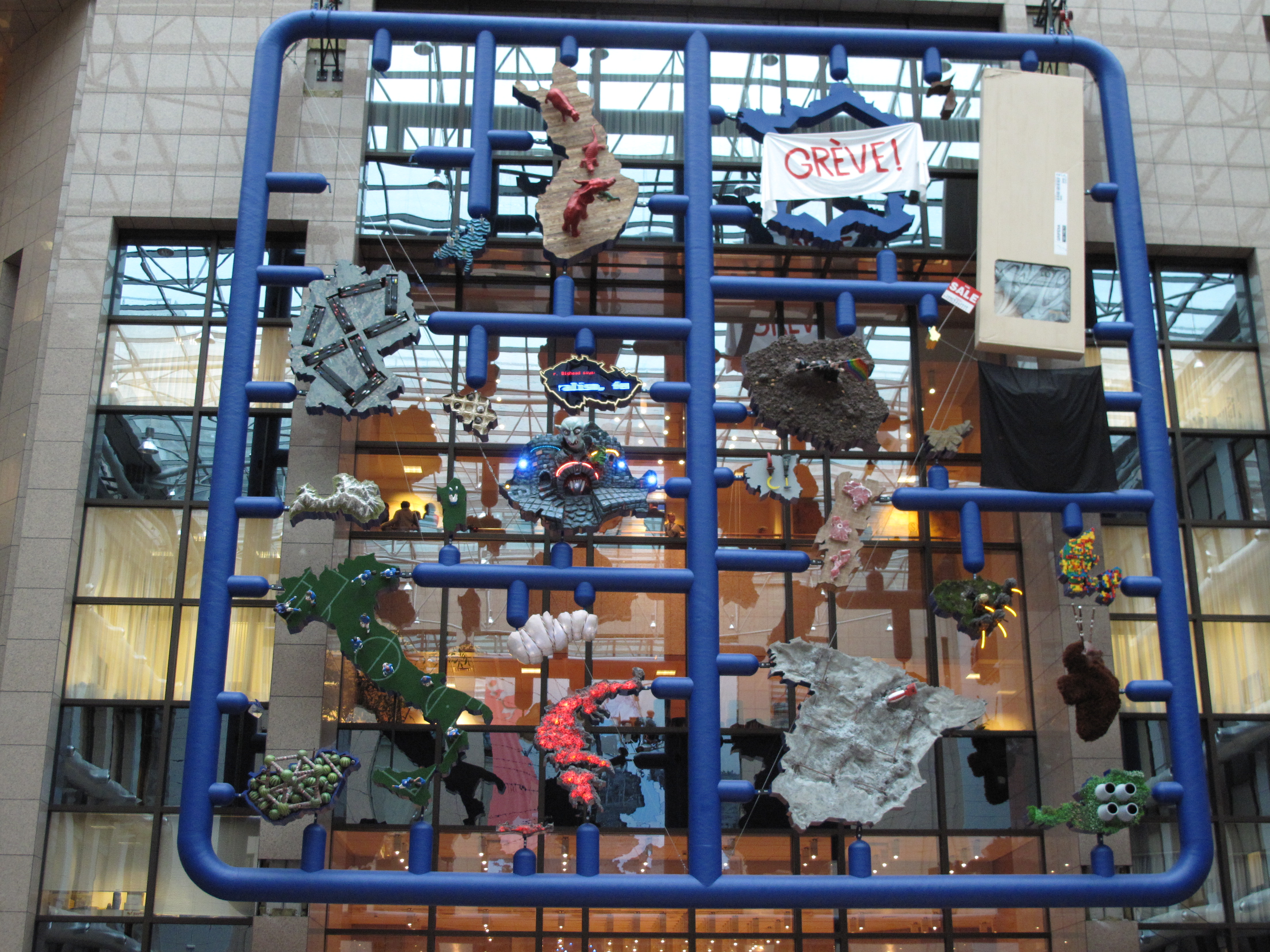 La creación, llamada 'Entropa', es una composición gigante en la que cada país de la Unión Europea toma la forma de un estereotipo con el que supuestamente se le identifica. Así, Italia es un campo de fútbol en la que los jugadores se masturban con balones, Reino Unido ha desaparecido del mapa y hay quien ha visto en las carreteras que recorren Alemania la forma de una cruz gamada.